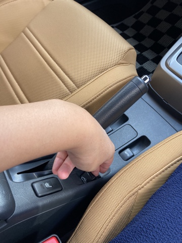 まずは、サイドブレーキを引きます。