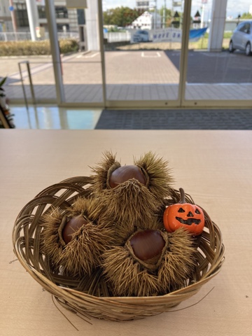 お客様がイガつきの栗🌰をお裾分けに