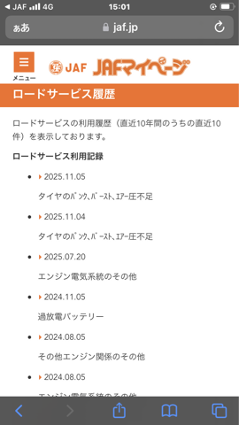 (私のロードサービス履歴です)