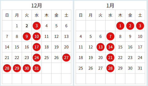 大阪ダイハツ年末年始の営業スケジュールは下記の通りとなります。