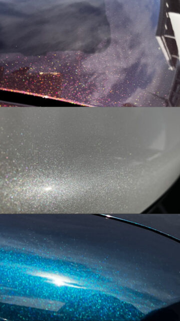 陽に当たると赤や紫やゴールドの微細なラメが輝き