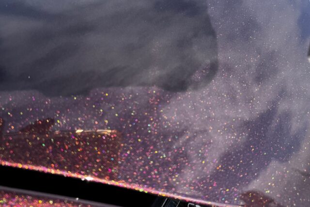 陽に当たると赤や紫やゴールドの微細なラメが輝き