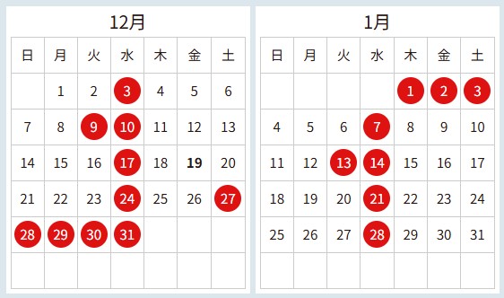 年末年始休業のお知らせは
