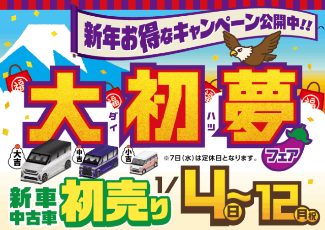 新年最初のお得な大初夢フェアに是非!是非!、泉北店へお越しください!