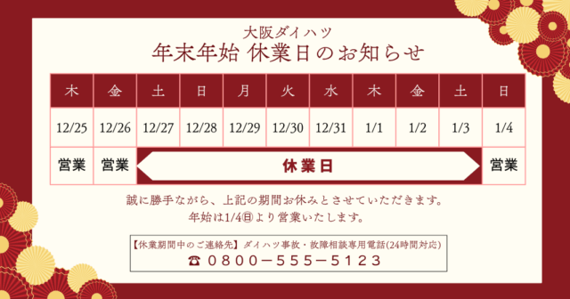 堺店は年末年始、下記を休業日とさせていただきます。